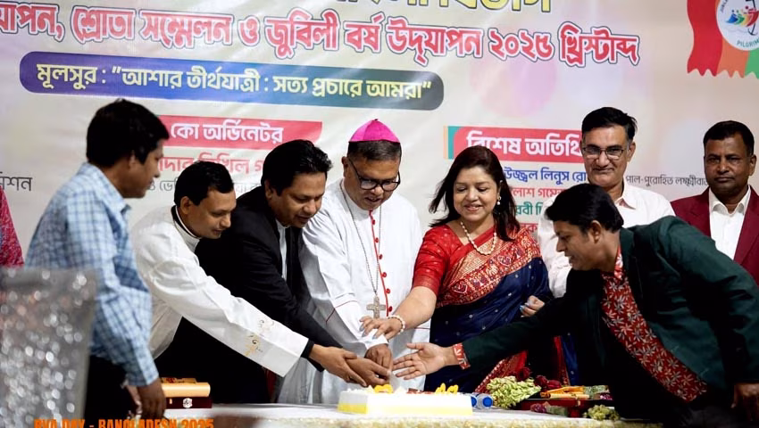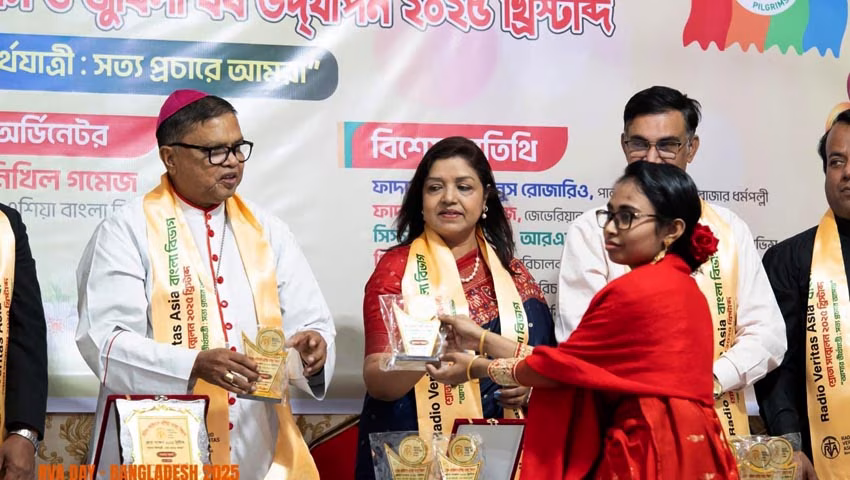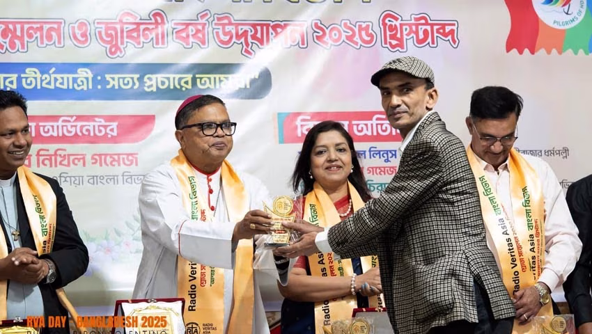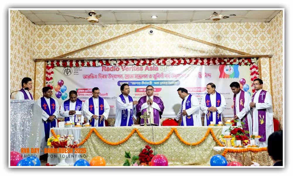 গতকাল ৫ ডিসেম্বর, ২০২৫ শুক্রবার সকাল ১০ টায় আর্চবিশপ টি.এ. গাঙ্গুলী হল, সুভাষ বোস এভিনিউ, লক্ষ্ণীবাজার, ঢাকায় রেডিও ভেরিতাস এশিয়া (RVA-ফিলিপাইন) বাংলা বিভাগের ৪৫ তম প্রতিষ্ঠা বার্ষিকী উপলক্ষে রেডিও ভেরিতাস এশিয়া বাংলা বিভাগ আরভিএ দিবস উদযাপন করা হয়। অনুষ্ঠান শুরু হয় জাতীয় পতাকা উত্তোলন ও জাতীয় সঙ্গীত পরিবেশনের মধ্য দিয়ে। বক্তৃতা ও অনুষ্ঠানের ফাঁকে ফাঁকে ছিল মনোমুগ্ধকর সাংস্কৃতিক অনুষ্ঠানের পরিবেশনা। এতে ১ জন বিশপ, ১০ জন ফাদার, ১৫ জন সিস্টার, ২ জন ব্রাদারসহ প্রায় ১৪০ জন অংশগ্রহন করেন।